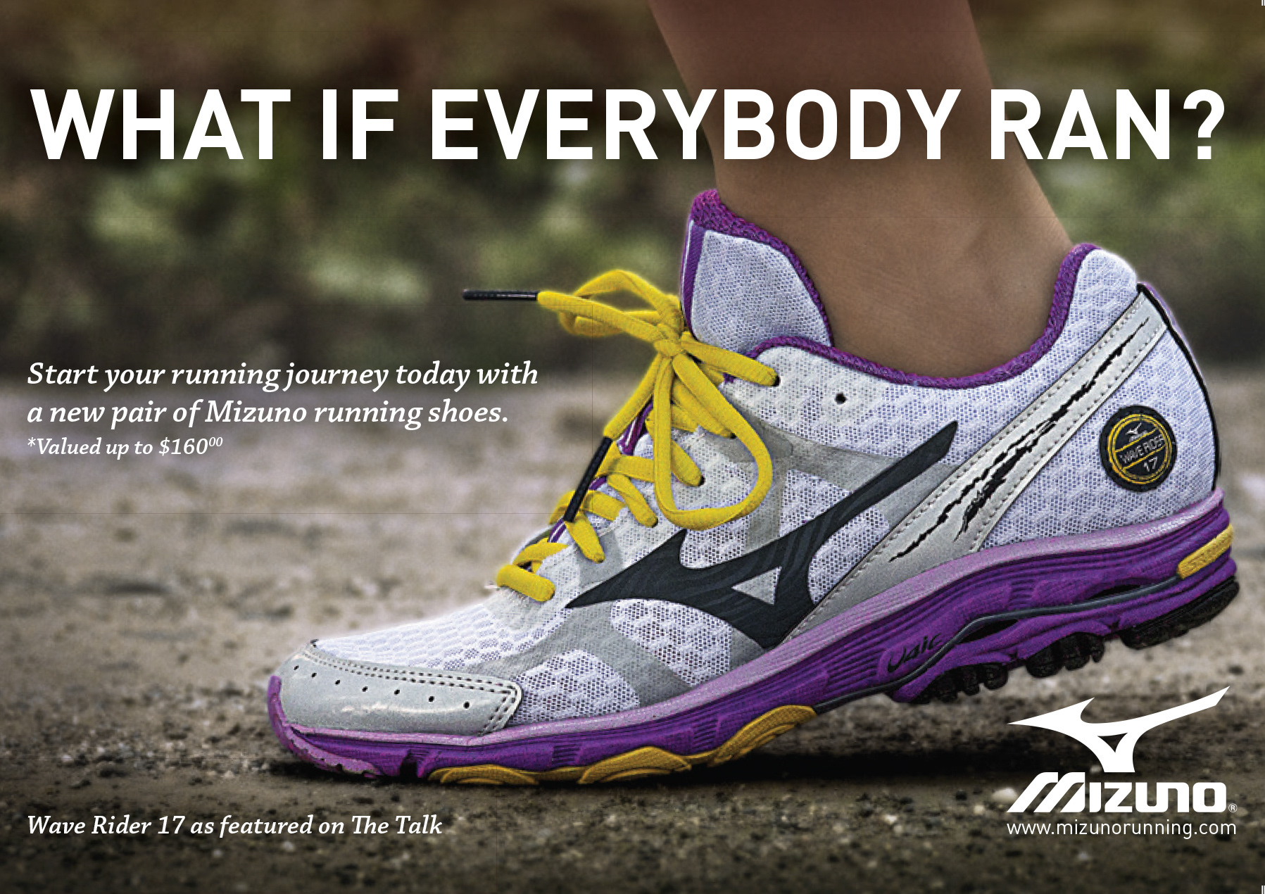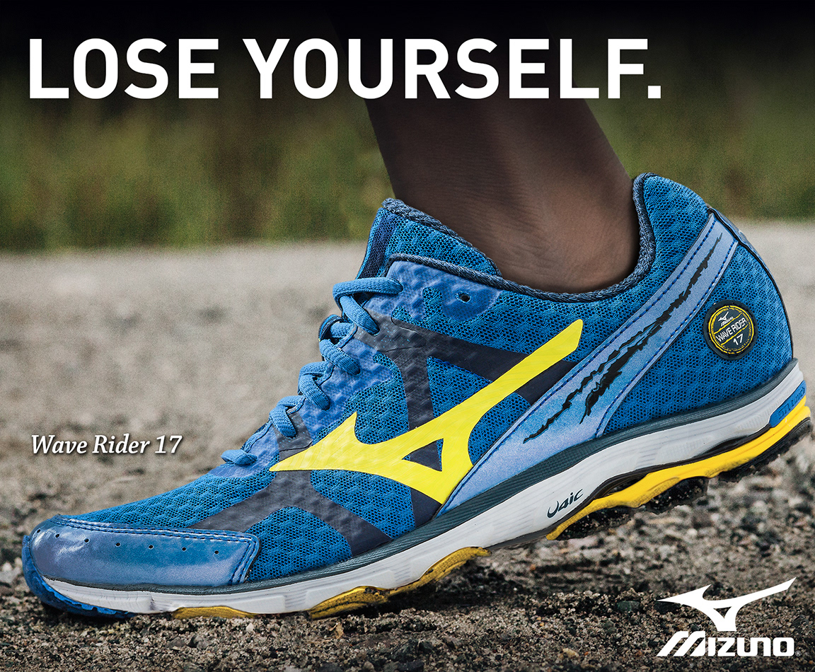 Wave Rider 17 advertisements imagery for Mizuno Retailers from Zappos to Paragon Sports and Amazon.com. Copy provided by Brand Marketing Department. Photoshop skills superimposing studio shot shoes on lifestyle background.